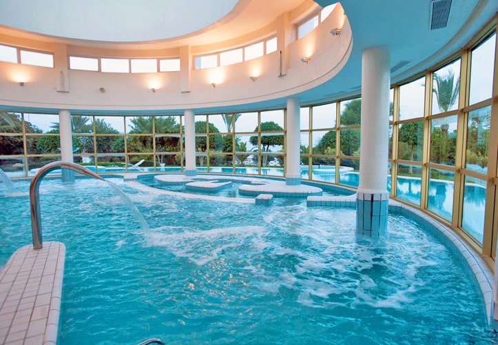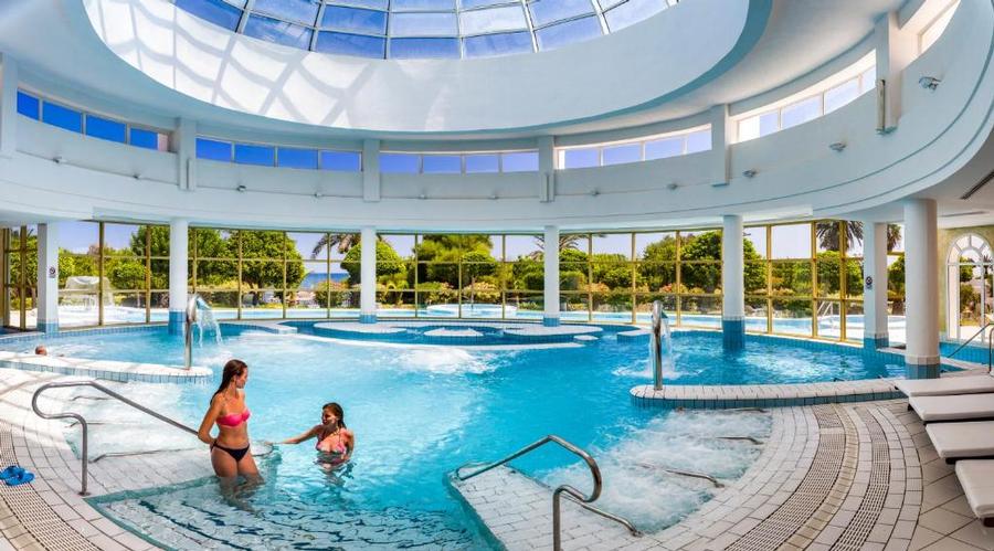 le centre offre ainsi une piscine d’eau de mer couverte et une autre en plein air, ainsi qu’un choix de traitement du corps et massages.