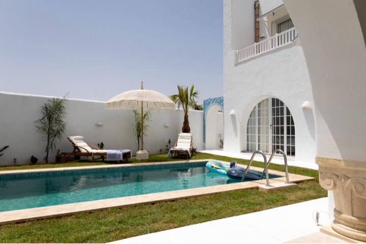 Une belle demeure alouer pour les vacances composé de salon,cuisiné,4 suites,SDB invité dans un quartier calme proche de centre ville et la plage a 2km.
