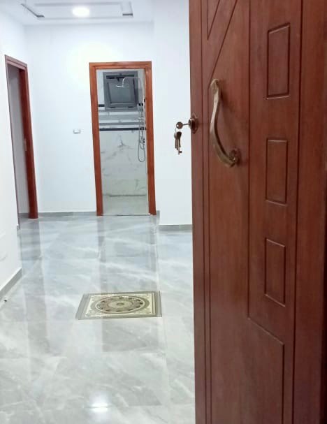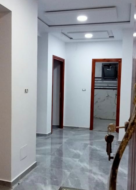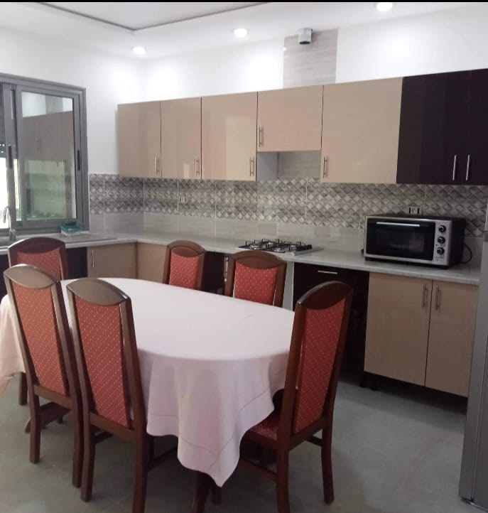 une cuisine moderne bien équipée avec un réfrigérateur ,une machine à laver et un climatiseur au salon. Elle est aussi bien sécurisée