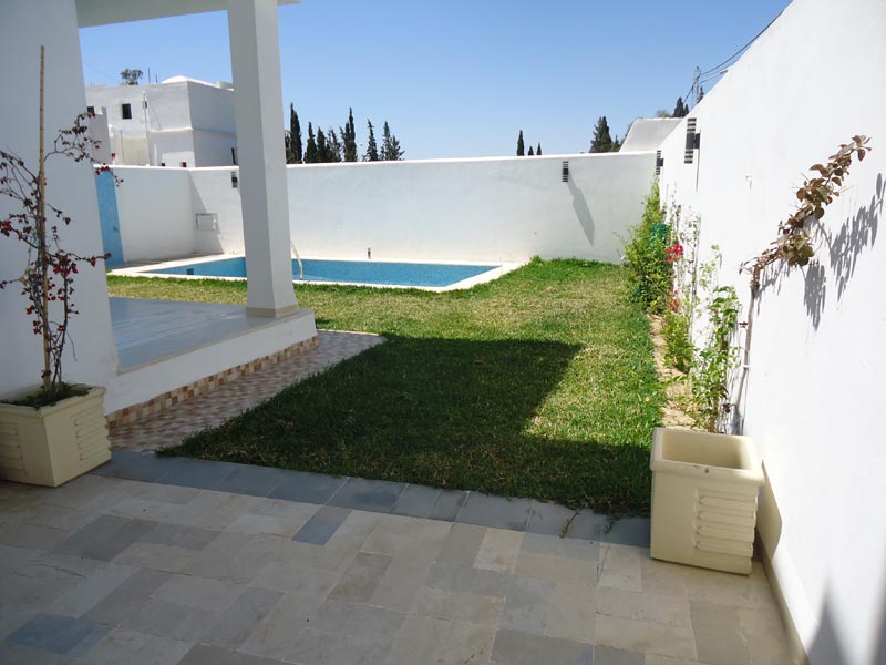 A louer villa a Hammamet S+4 avec piscine a 100m de la plage la villa est dans une résidence fermé avec parking , la villa comporte ,jardin gazonée, piscine, au rez de chaussé cuisine,salon,chambre invité,SDE,à l'étage suite parent,deux chambre SDB,et au 2eme étage une chambre,SDB,kitchinet, un grand terrasse.
