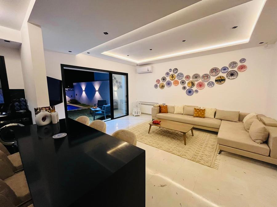 Profitez d’un séjour inoubliable dans une superbe villa avec piscine et jardin, idéalement située dans l’un des plus beaux quartiers d’Hammamet Nord.